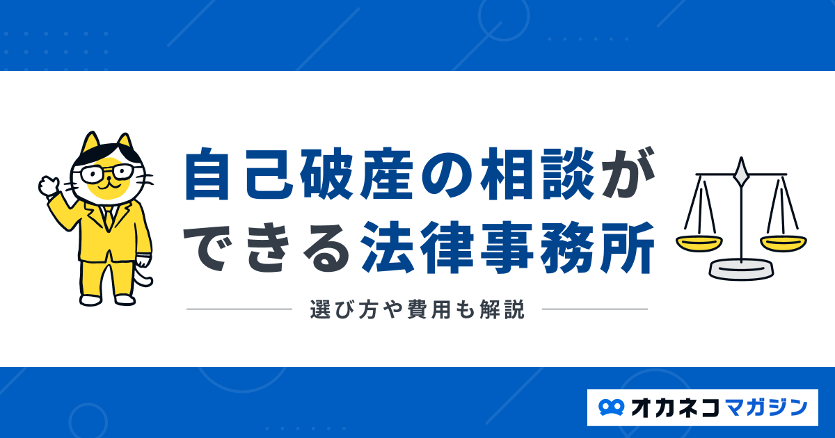 - 自己破産の手続きを弁護士に依頼すると、依頼費用はかかるが面倒な手続きをサポートしてくれるうえ、債権者からの督促が早急に止められる可能性が高いなどのメリットがあります。