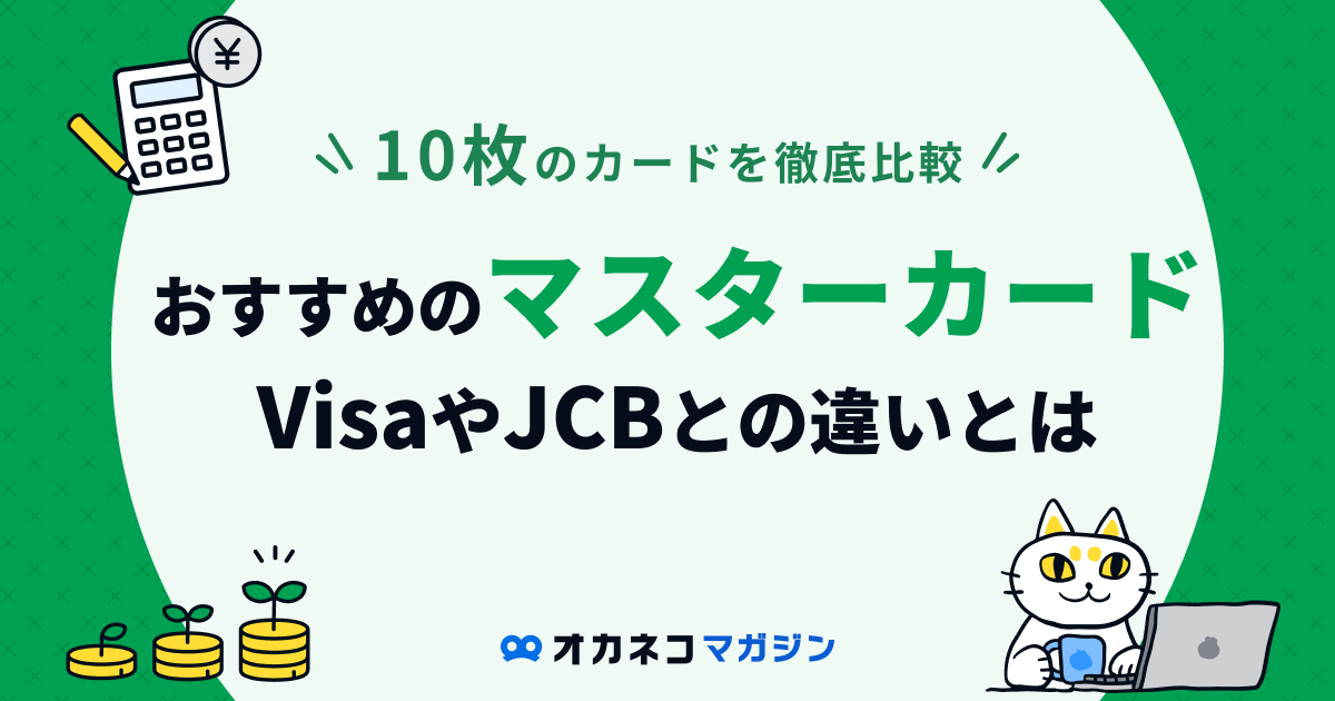 本記事では、当メディアがおすすめするマスターカードを厳選して10枚紹介します。VisaやJCBとの違い、マスターカードのメリット・デメリットについても解説しているので、マスターカードを検討している方は参考にしてください。
