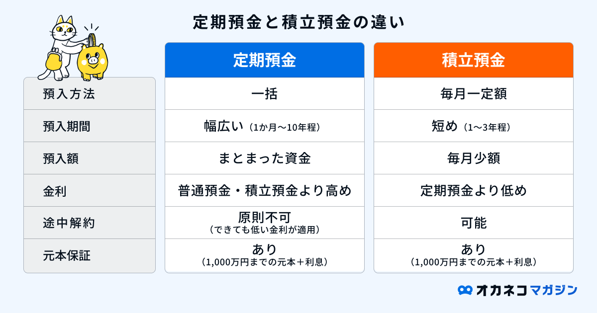 「定期預金」はお金を守る・固定するもの、「積立預金」はお金を作るものであり、まったく異なる役割を持つ金融商品です。