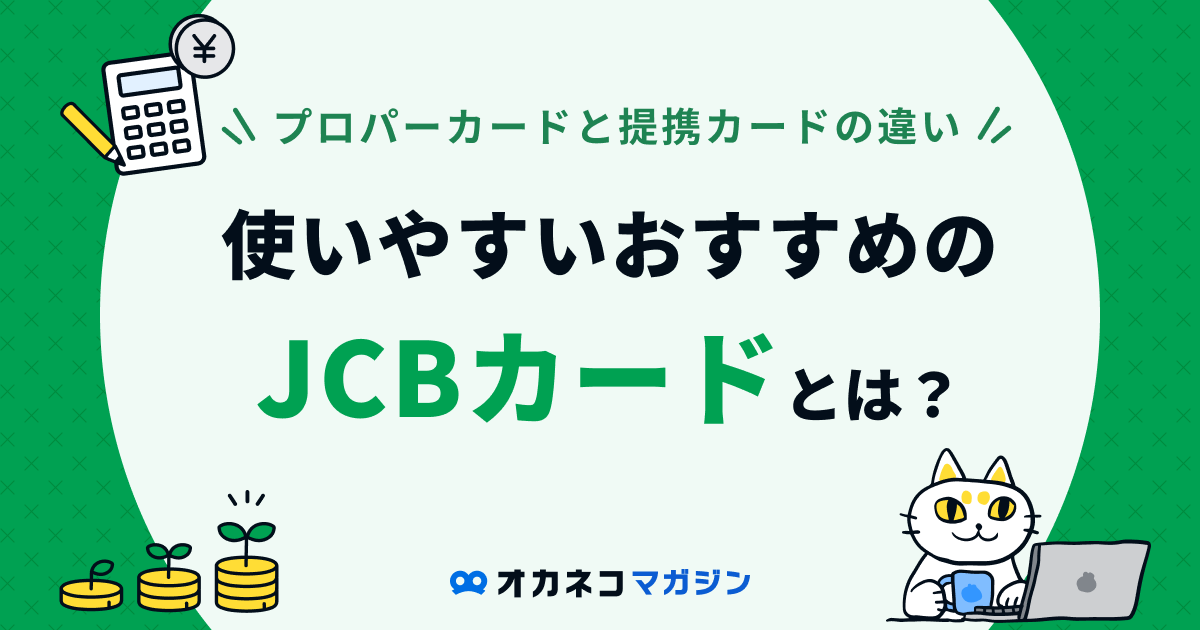 - 自分にぴったりのJCBカードを「JCBプロパーカードのおすすめ5選」「JCB提携カードのおすすめ8選」から見つけよう