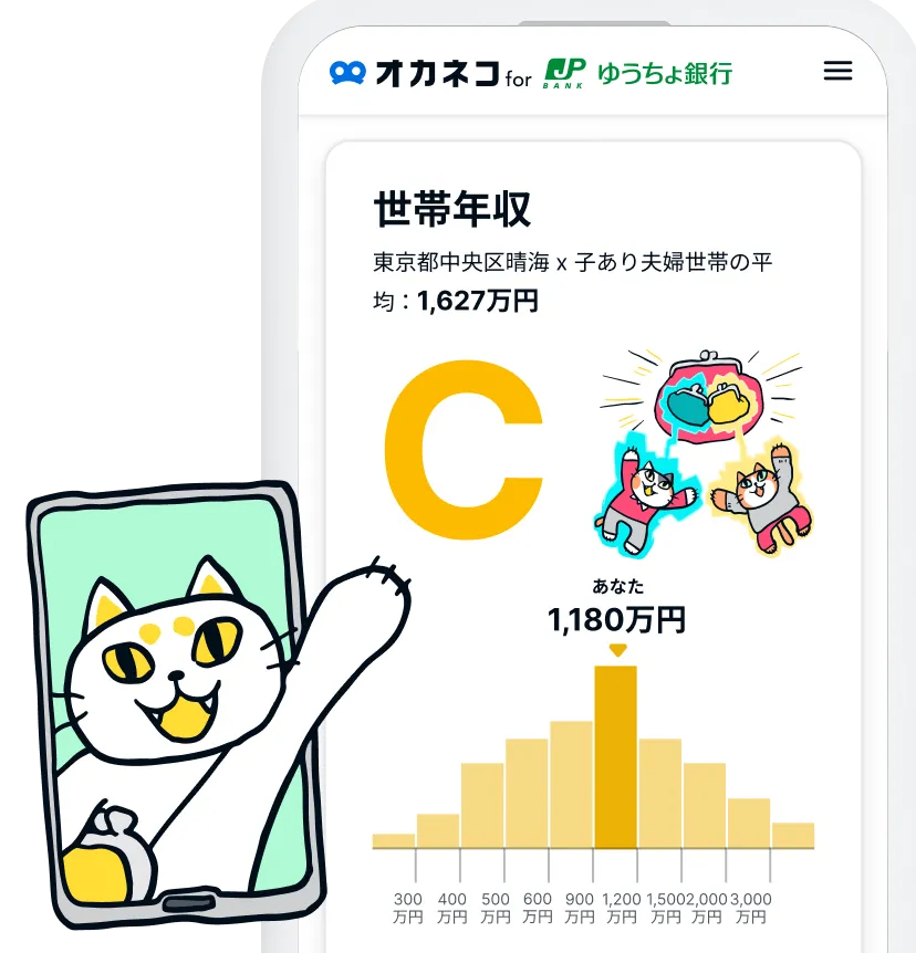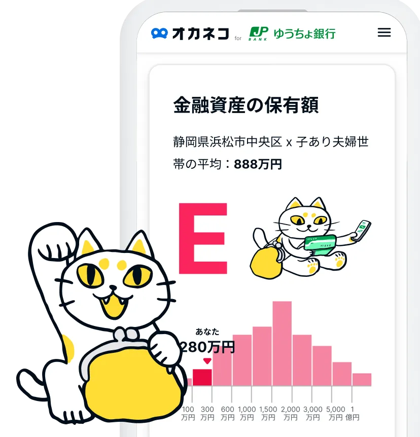 対象:オカネコ for ゆうちょ銀行にご登録・家計診断を実施していただき、その後にお送りするメッセージを最後までご確認いただいた方