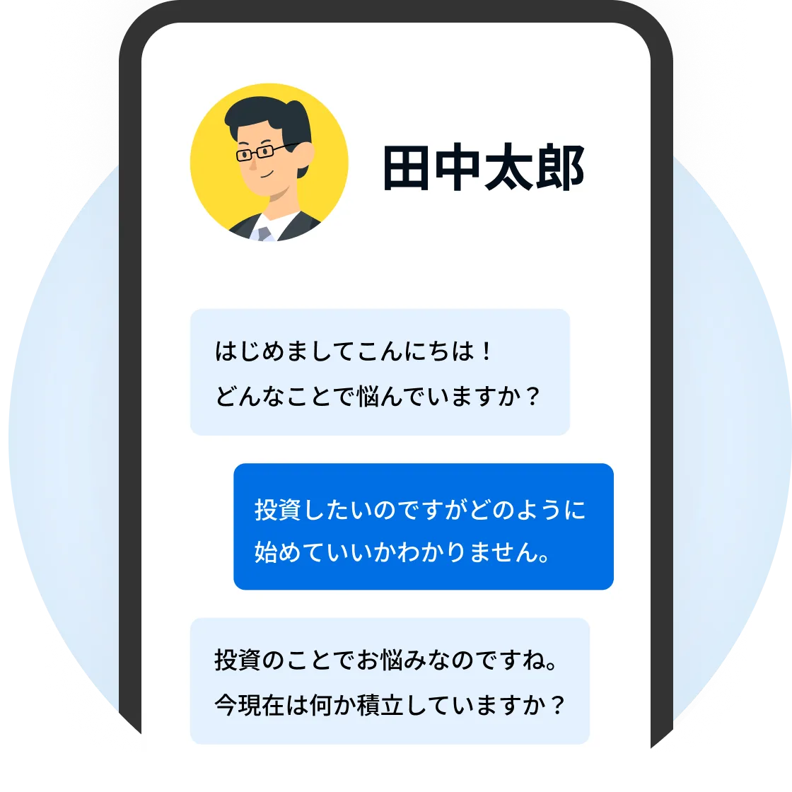 チャット上で、あなたの家計の健康診断を見たプロから家計と投資に関するアドバイスを無料で受けられます。