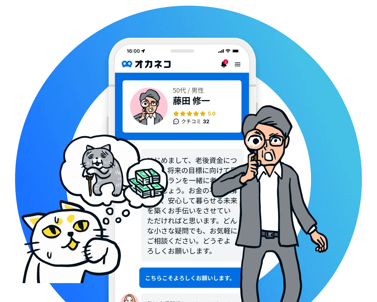 オカネコは複数の金融機関と提携しており、一般的な金融サービスとは異なり、老後資金を含む幅広い資産形成の選択肢を提供できます。その中からあなたに本当に必要な老後資金プランを提案し、特定の会社に偏らない中立的な視点でのアドバイスを行います。無理に商品を押し売りせず、理想の暮らしや考えを踏まえたオリジナルの提案を行います。さらに、経験豊富なFPが中立な立場で対策を提案し、安心してご相談いただける環境を提供します。