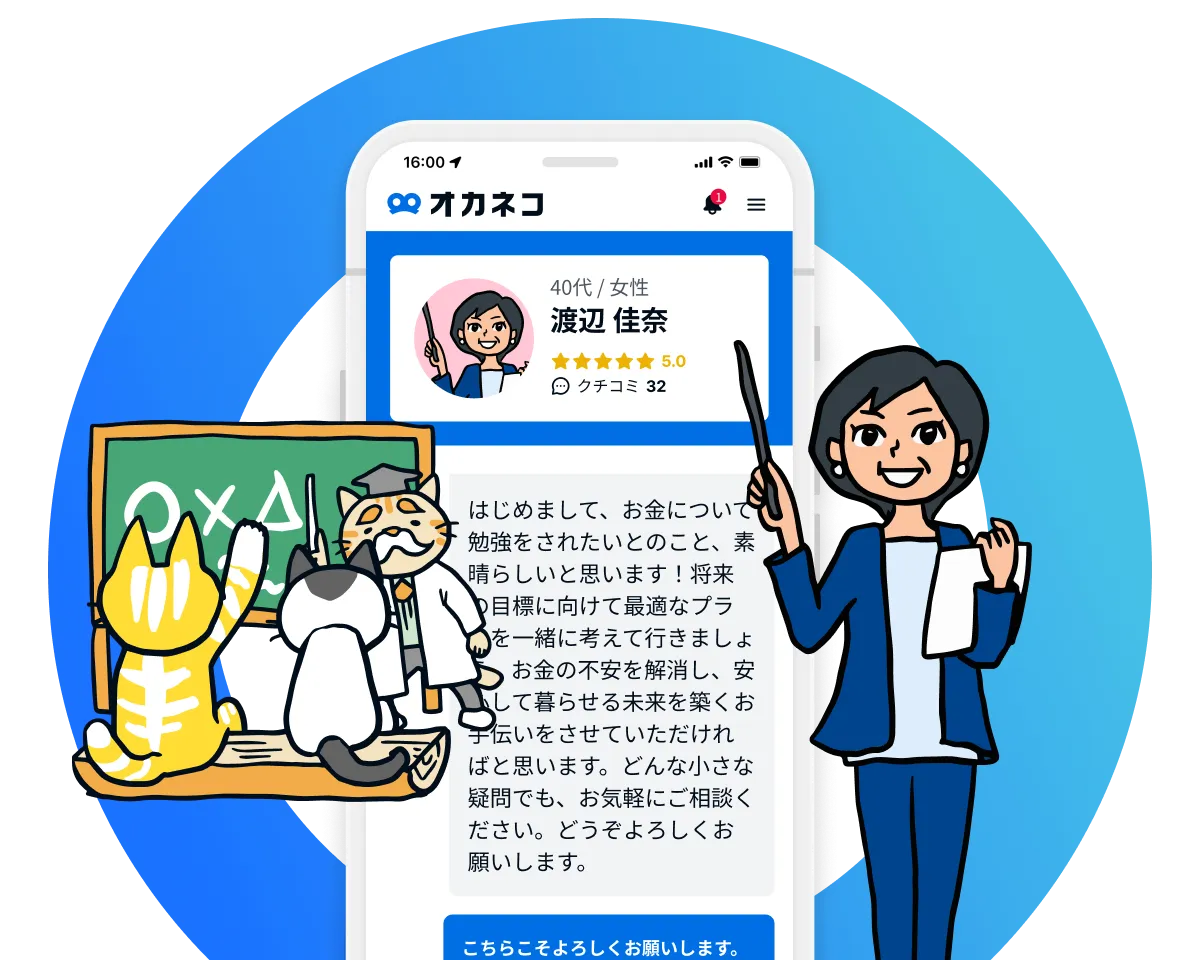 オカネコは複数の金融機関と提携しており、一般的な金融サービスとは異なり、老後資金を含む幅広い資産形成の選択肢を提供できます。その中からあなたに本当に必要な老後資金プランを提案し、特定の会社に偏らない中立的な視点でのアドバイスを行います。無理に商品を押し売りせず、理想の暮らしや考えを踏まえたオリジナルの提案を行います。さらに、経験豊富なFPが中立な立場で対策を提案し、安心してご相談いただける環境を提供します。