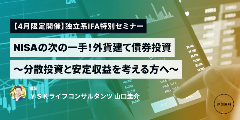 【4月限定開催】“独立系IFA特別セミナー” NISAの次の一手!外貨建て債券投資 〜分散投資と安定収益を考える方へ〜
