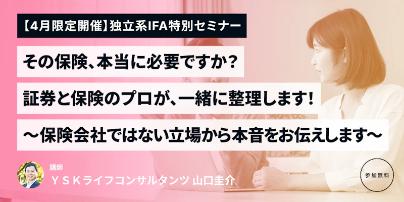【4月限定開催】独立系IFA特別セミナー その保険、本当に必要ですか?証券と保険のプロが、一緒に整理します! ~保険会社ではない立場から本音をお伝えします~